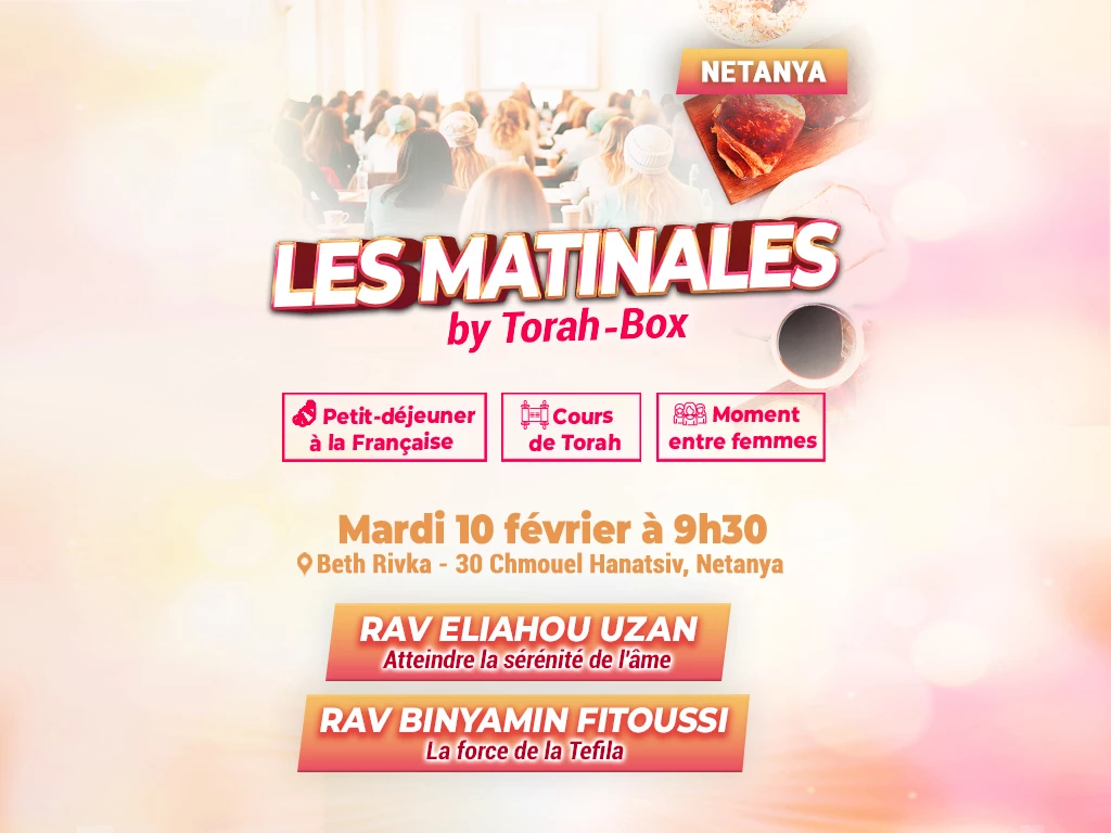 Torah-Box et la communauté de Beth Rivka vous convient à une nouvelle édition des Matinales, à Netanya, un moment unique entre femmes.