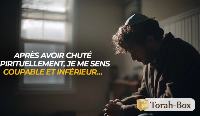 Question : « J’ai toujours respecté la Torah et les Mitsvot, mais pendant une certaine période, j’ai connu une forte dégradation spirituelle intérieure (même si extérieurement cela ne se voyait pas). Grâce à D.ieu, je me suis ensuite ressaisi, mais je sens que mon mauvais penchant me poursuit dans mes pensées et que ce ne sera plus jamais comme avant. Je sens que je serai toujours d’un niveau inférieur et je n’arrive plus à servir D.ieu dans la joie. Que dois-je faire ? Comment avancer sans me sentir coupable ? »